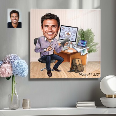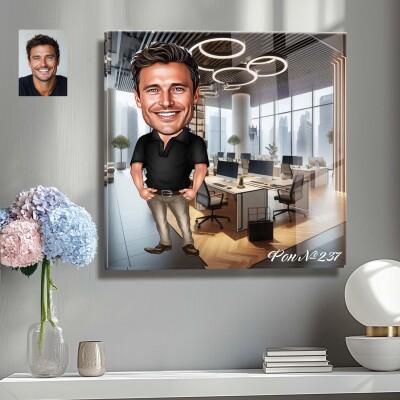 Стъклена карикатура на мъж фотограф (вариант 2)