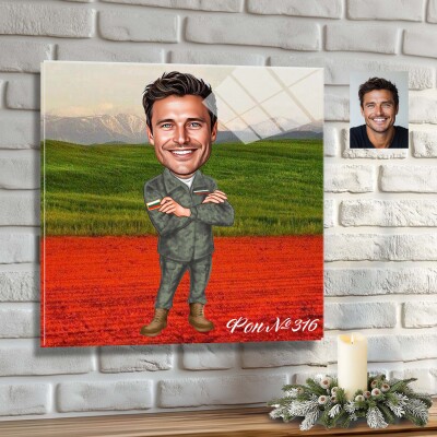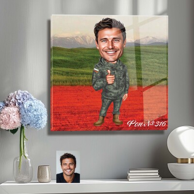 Стъклена карикатура на мъж в униформа - военен (Вариант 2)