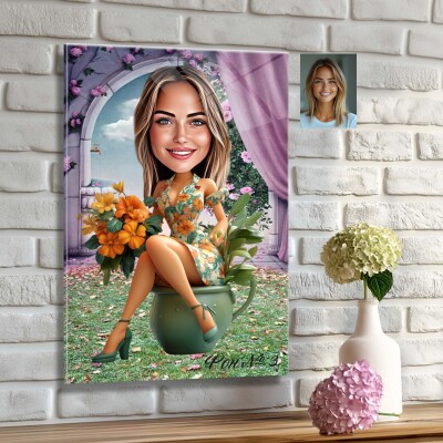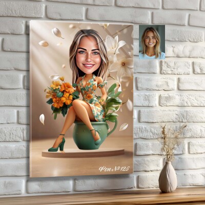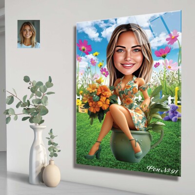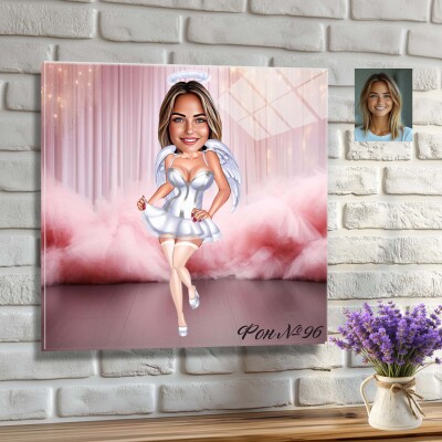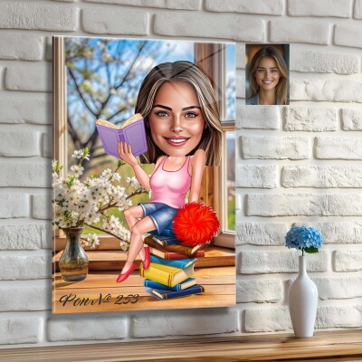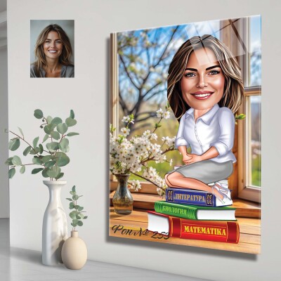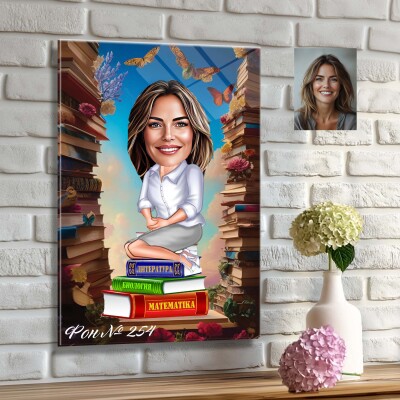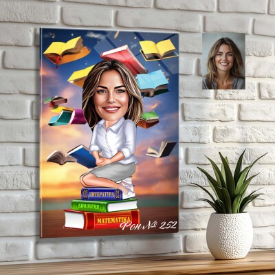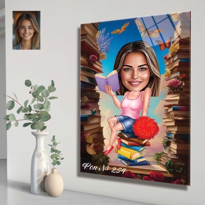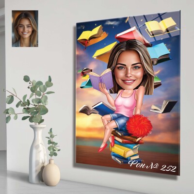 Стъклена карикатура на жена с книги - На крилете на въображението