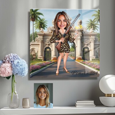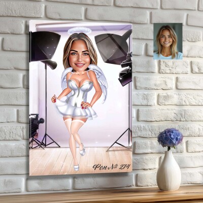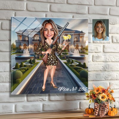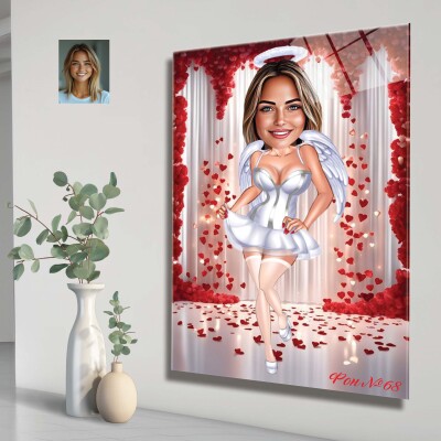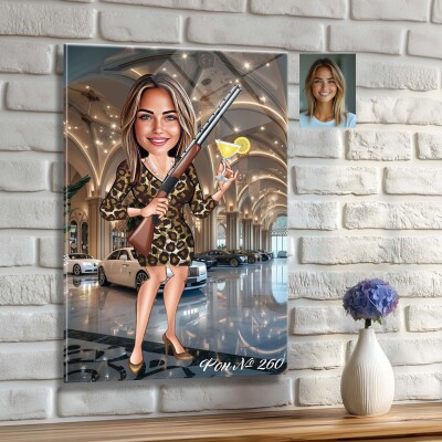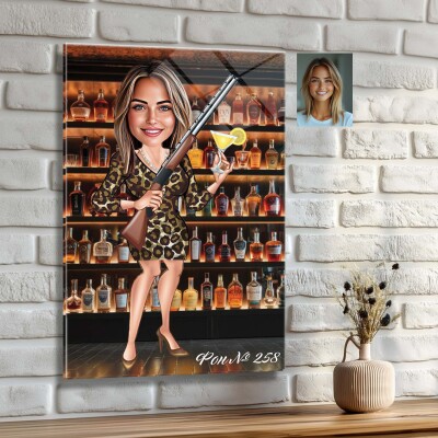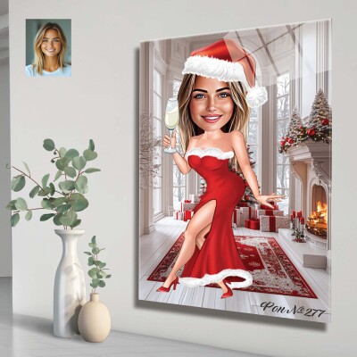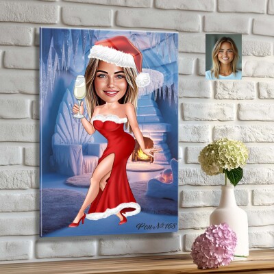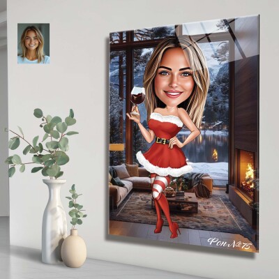 Стъклена карикатура на жена с шампанско - Новогодишно настроение