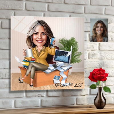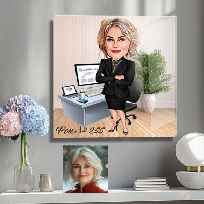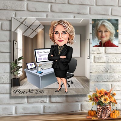 Стъклена карикатура на жена на бюро - Офис мениждър