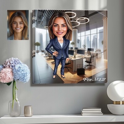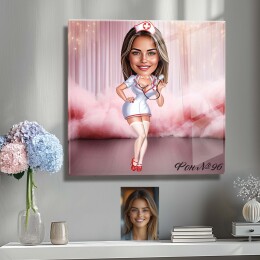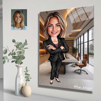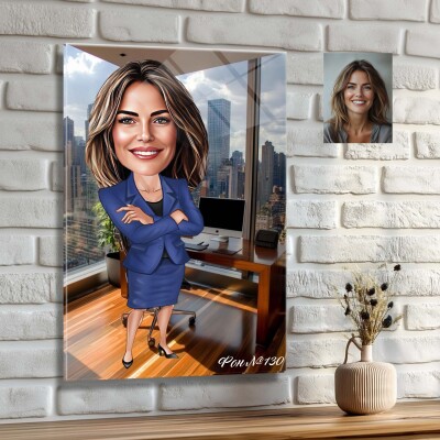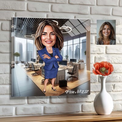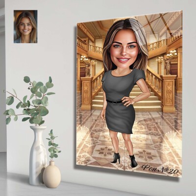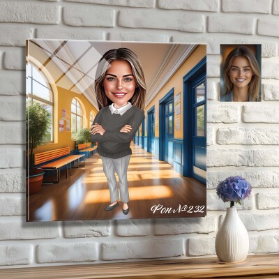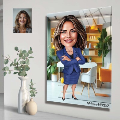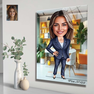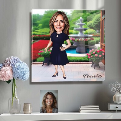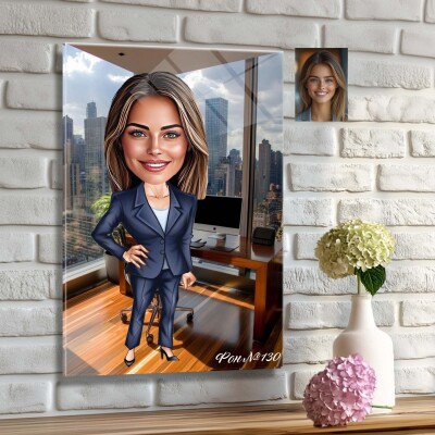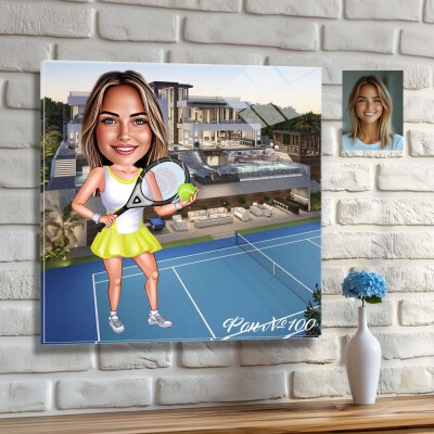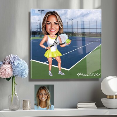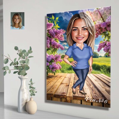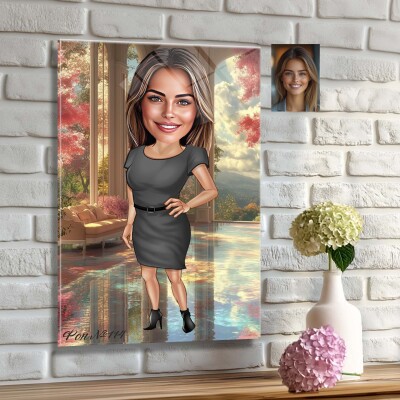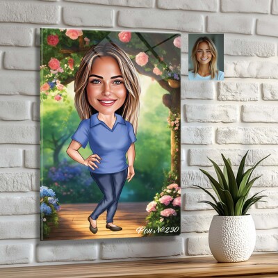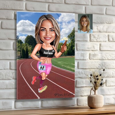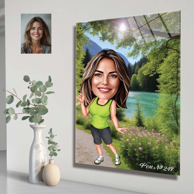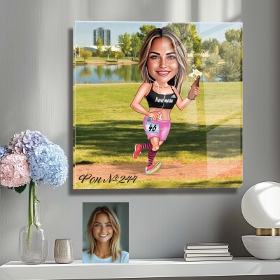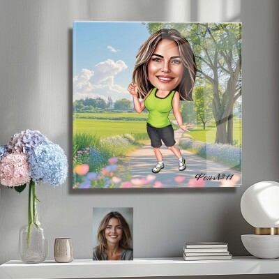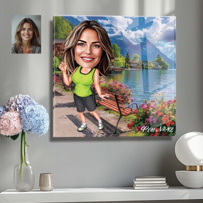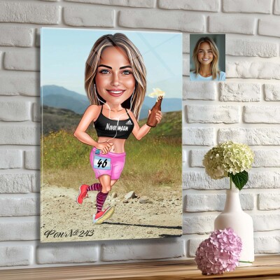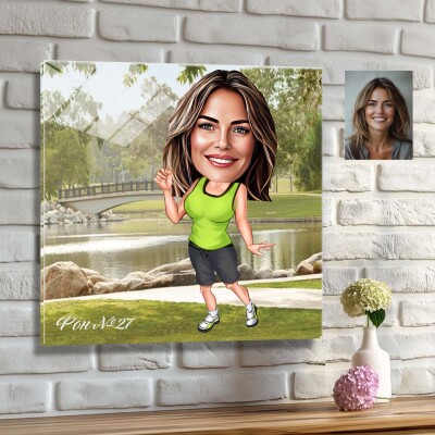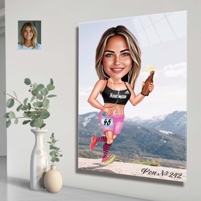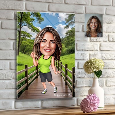 Стъклена карикатура на жена бегач - Тренировка на открито