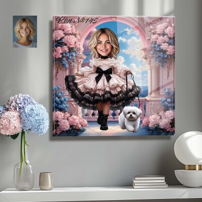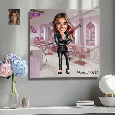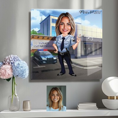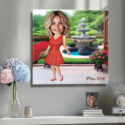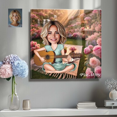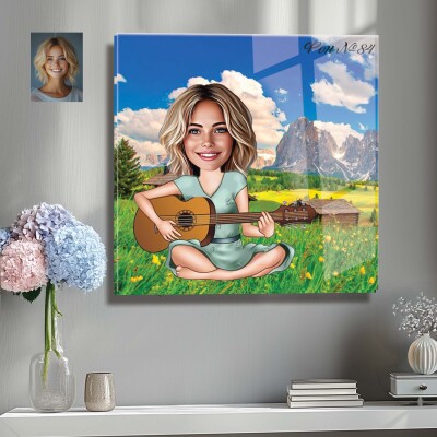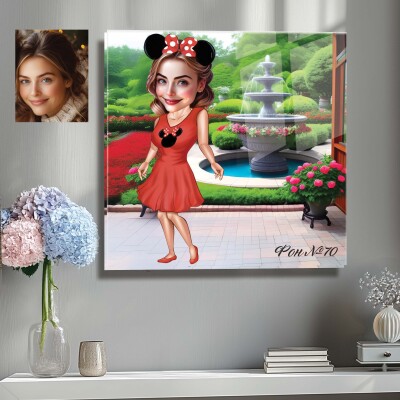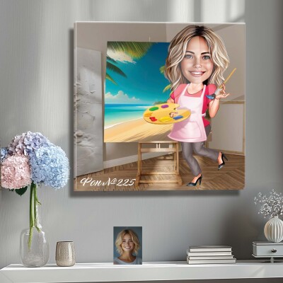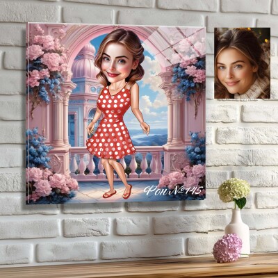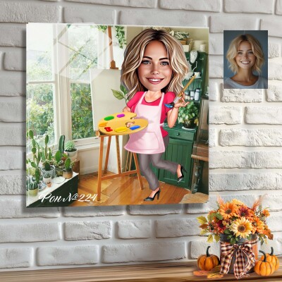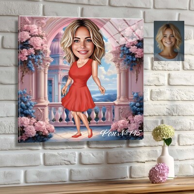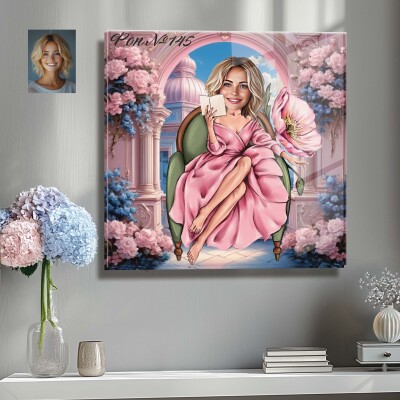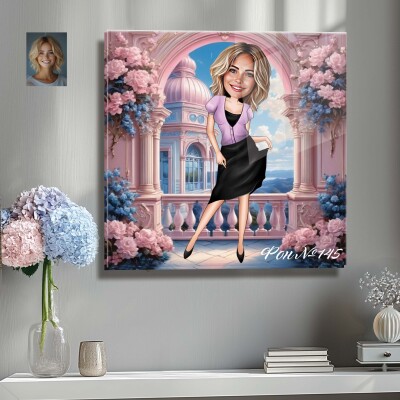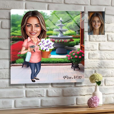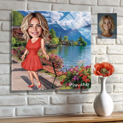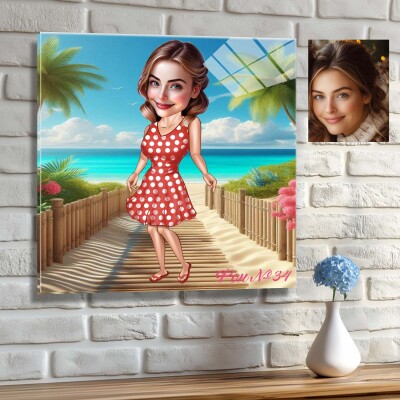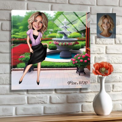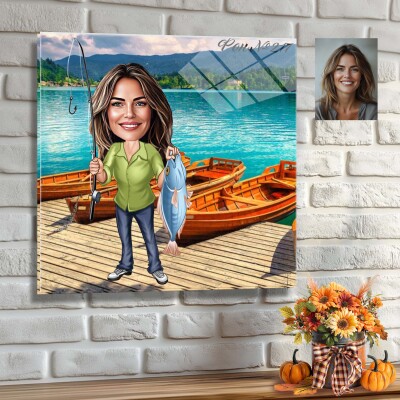 Стъклена карикатура на жена с лодка и въдица - рибар