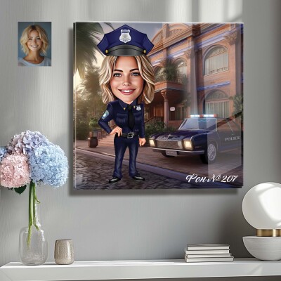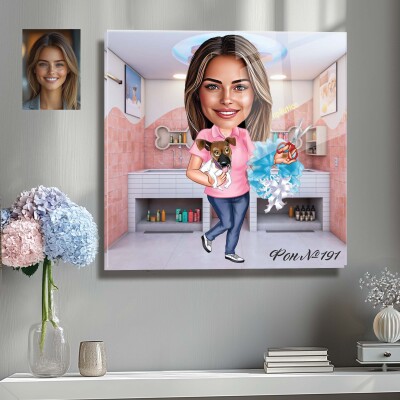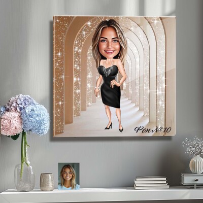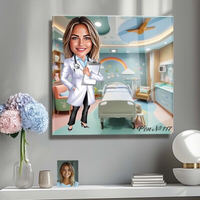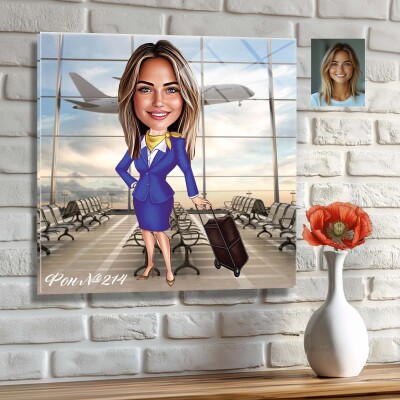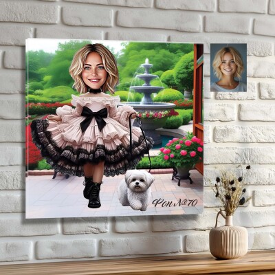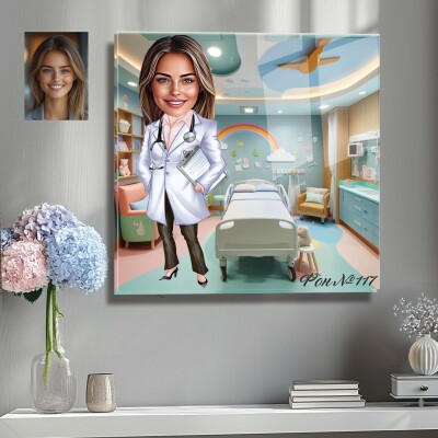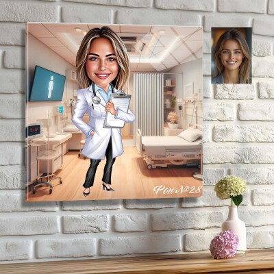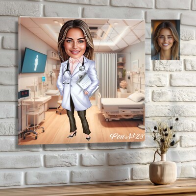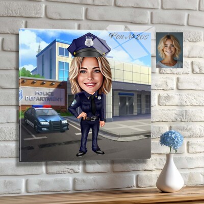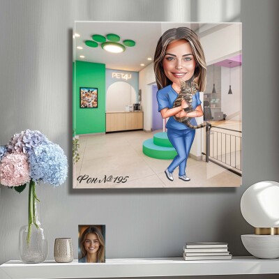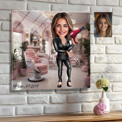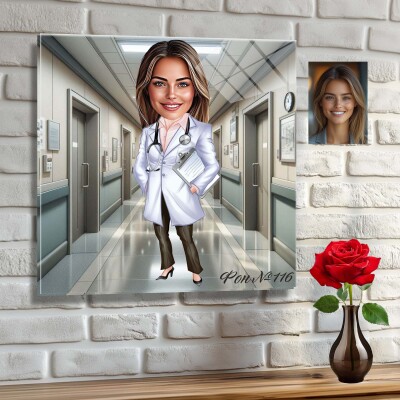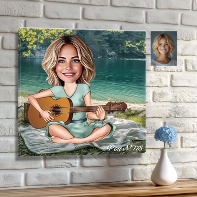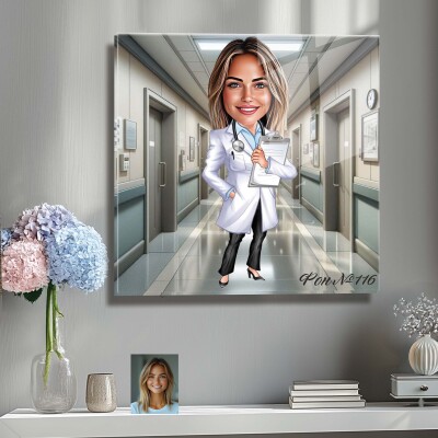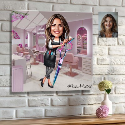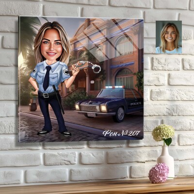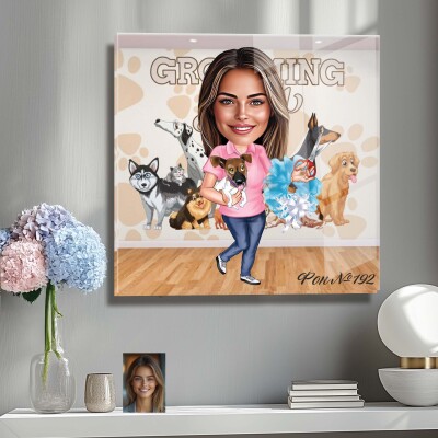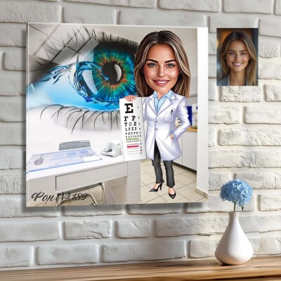 Стъклена карикатура на жена с лодка и въдица - рибар