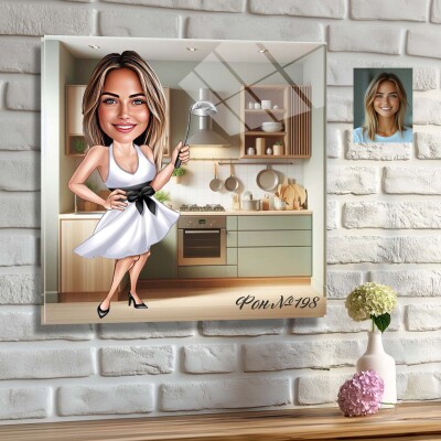 Стъклена карикатура на жена с черпак - Прилежна домакиня