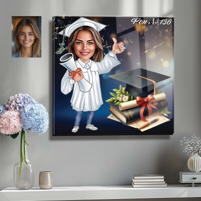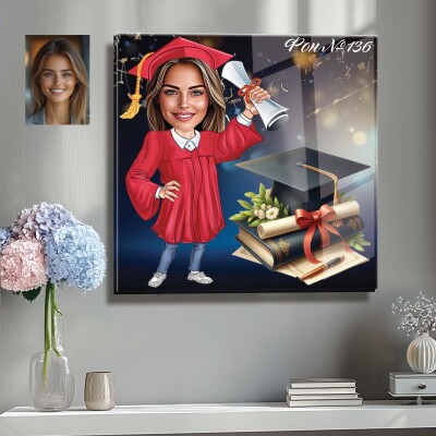 Стъклена карикатура на жена абсолвент - Дипломиране