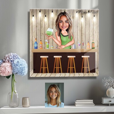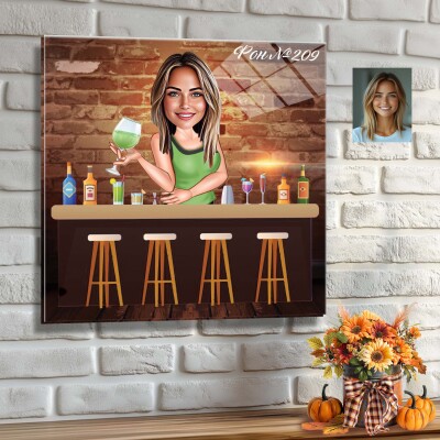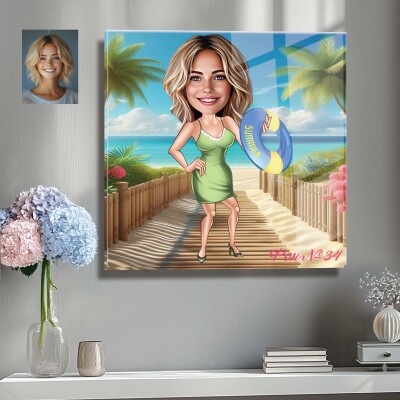 Стъклена карикатура на жена с коктейл - Плажни забавления