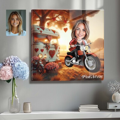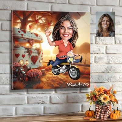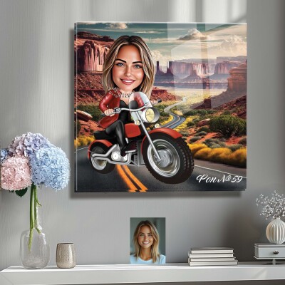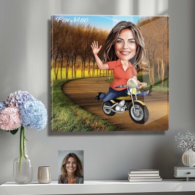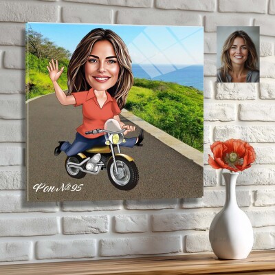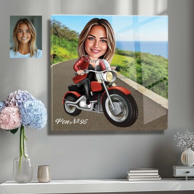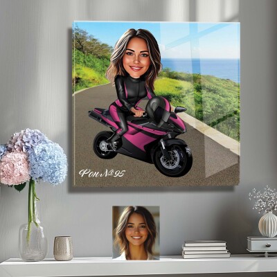 Стъклена карикатура на жена с мотор - Живот на скорост