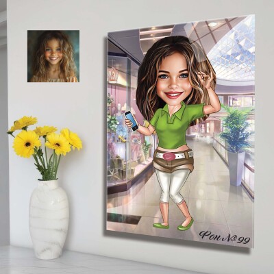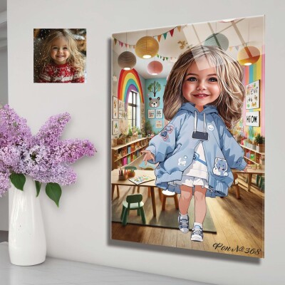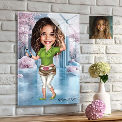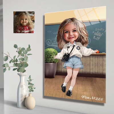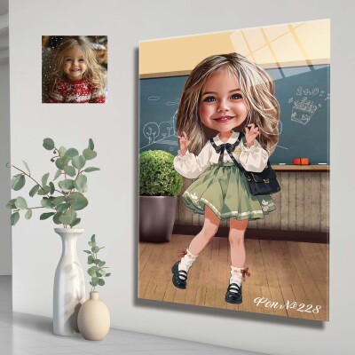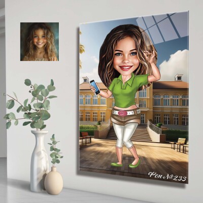 Стъклена карикатура на момиче ученичка - тийнѐйджърка