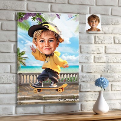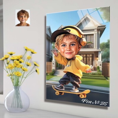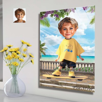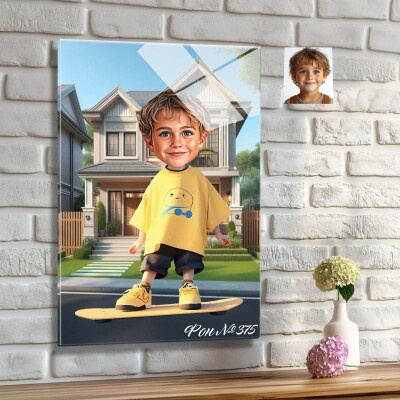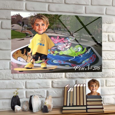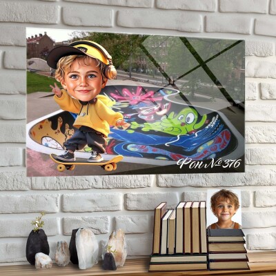 Стъклена карикатура на момче - скейтбордист (Вариант 2)