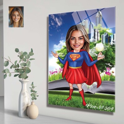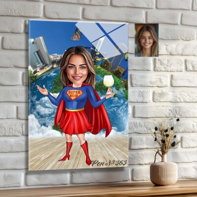 Стъклена карикатура на жена - Супергерой