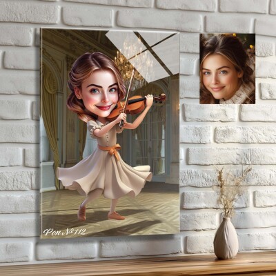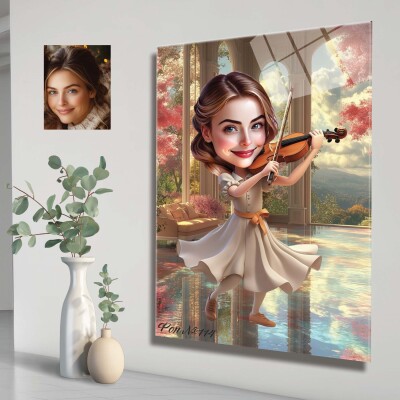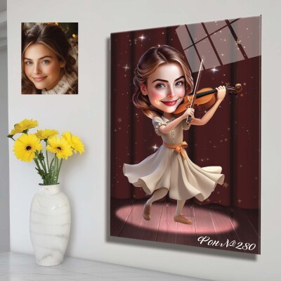 Стъклена карикатура на жена с цигулка - музикант