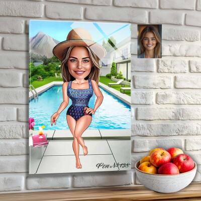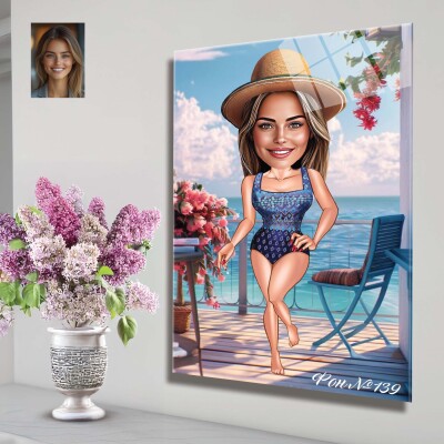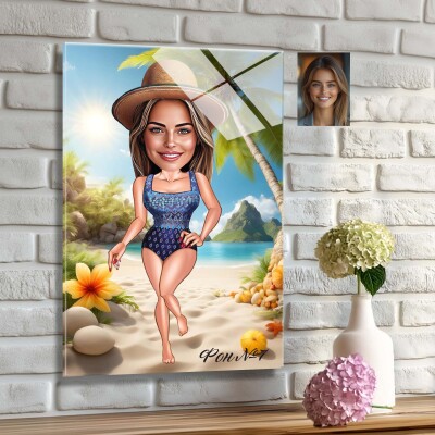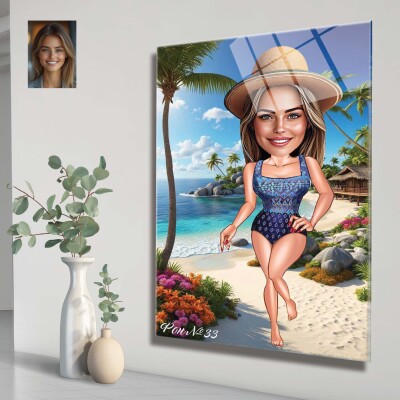 Стъклена карикатура на жена - Плажна разходка