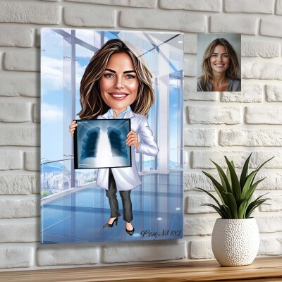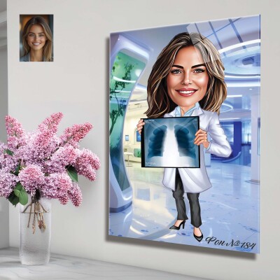 Стъклена карикатура на жена лекар - доктор, рентгенолог