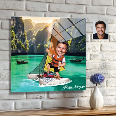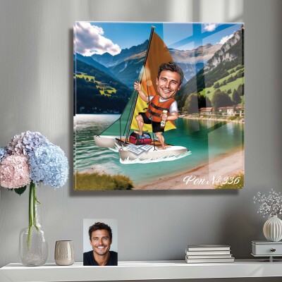 Стъклена карикатура на мъж с катамаран