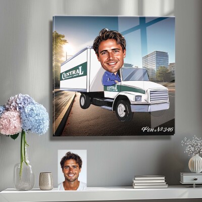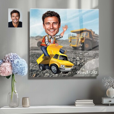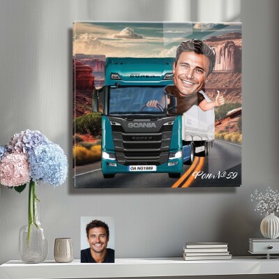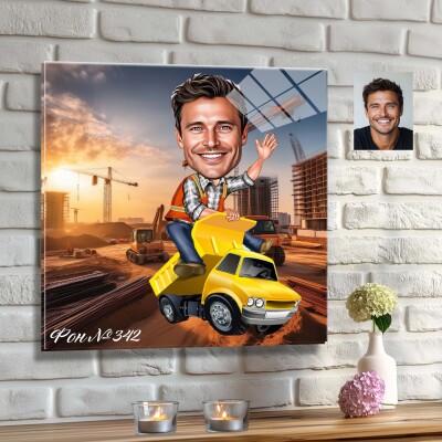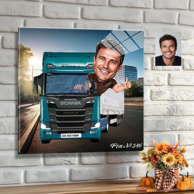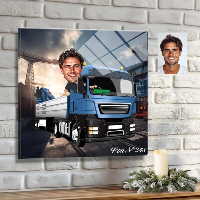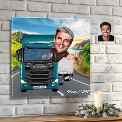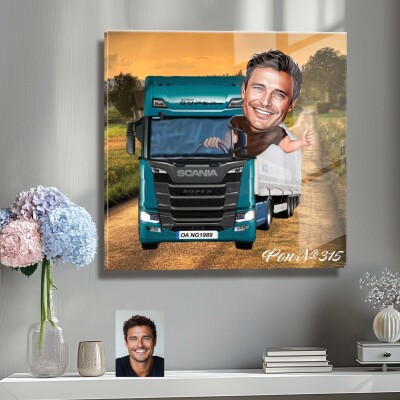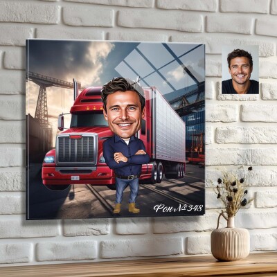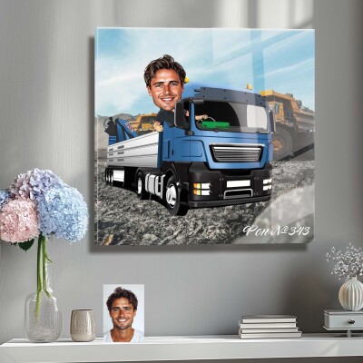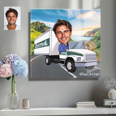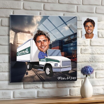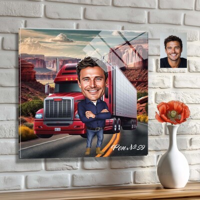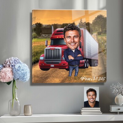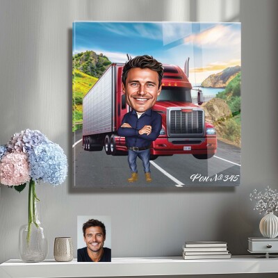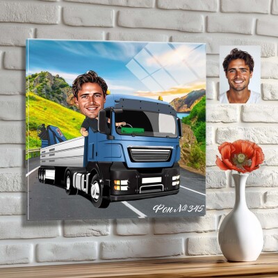 Стъклена карикатура на мъж - шофьор на камион (Вариант 3)