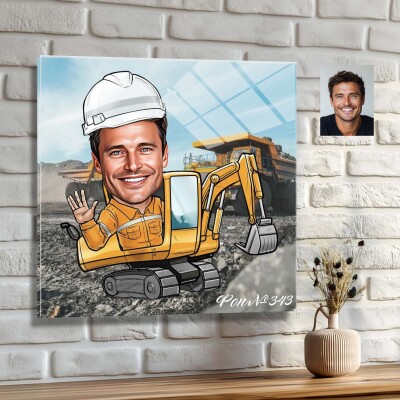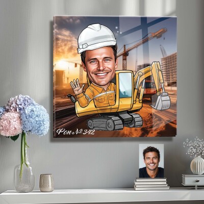 Стъклена карикатура на мъж с багер