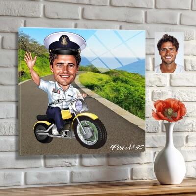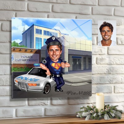 Стъклена карикатура на мъж полицай