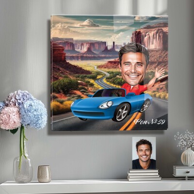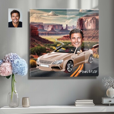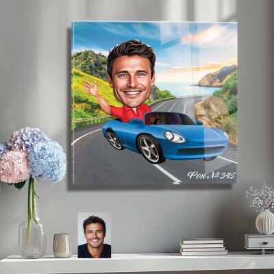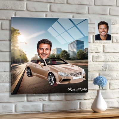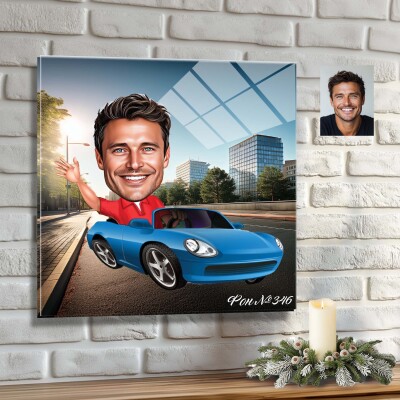 Стъклена карикатура на мъж с кола (вариант 2)