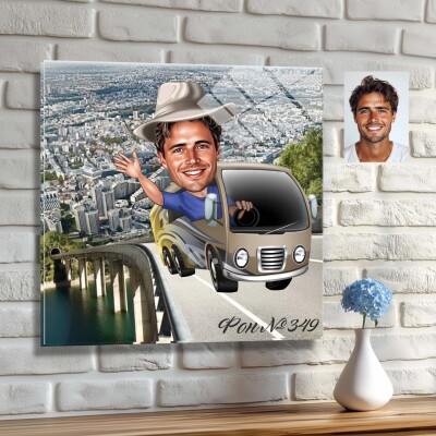 Стъклена карикатура на мъж - шофьор на камион