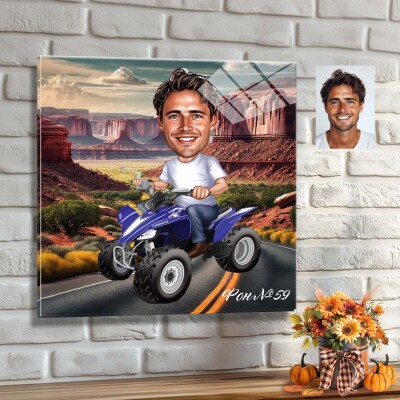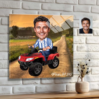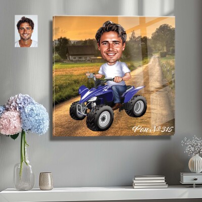 Стъклена карикатура на мъж с бъги - ATV (вариант 2)
