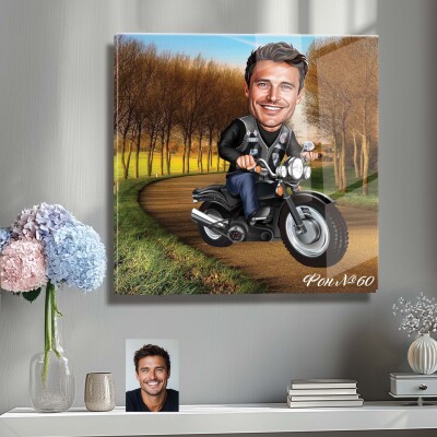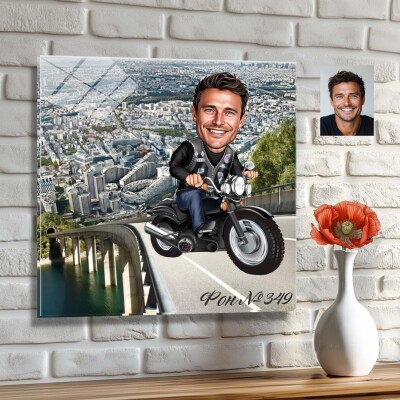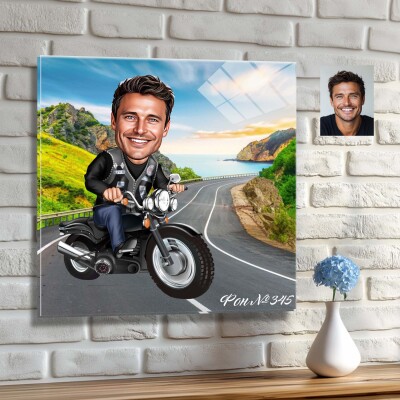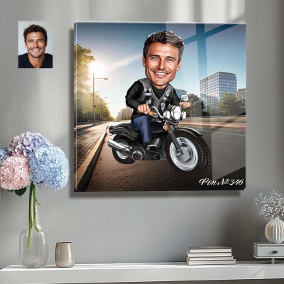Стъклена карикатура на мъж с мотор