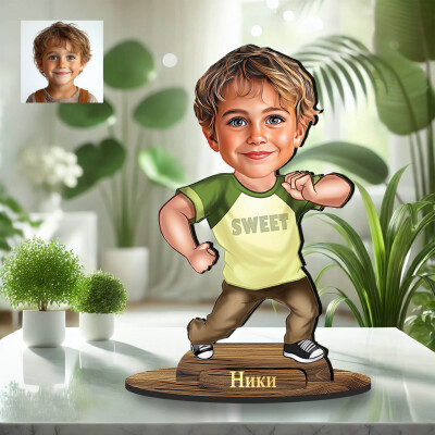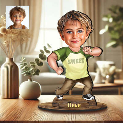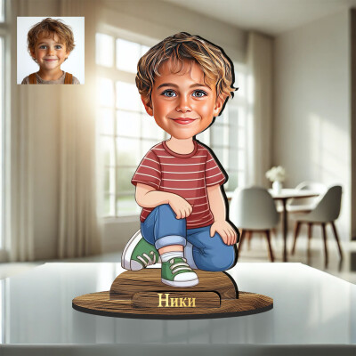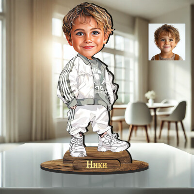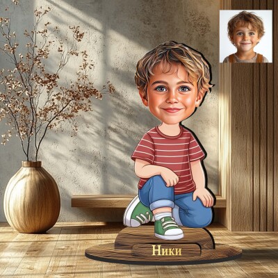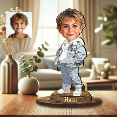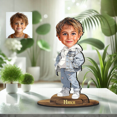 3Д дървен плакет - Карикатура - момче с дънково облекло