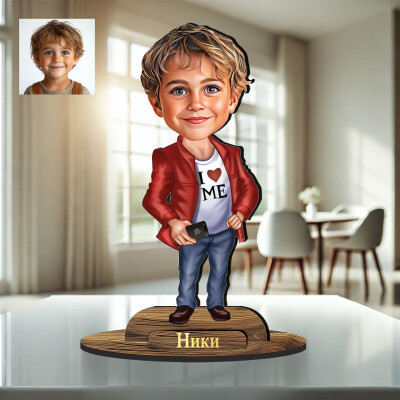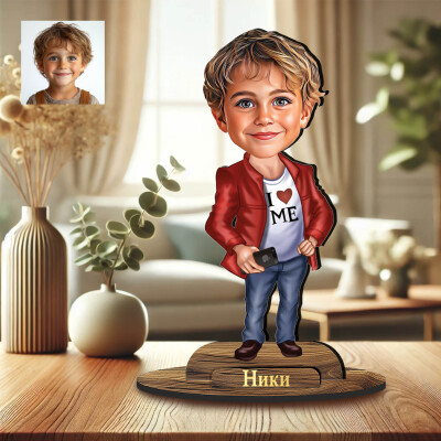 3Д дървен плакет - Карикатура - Стилно момче в червено