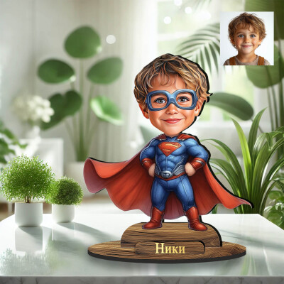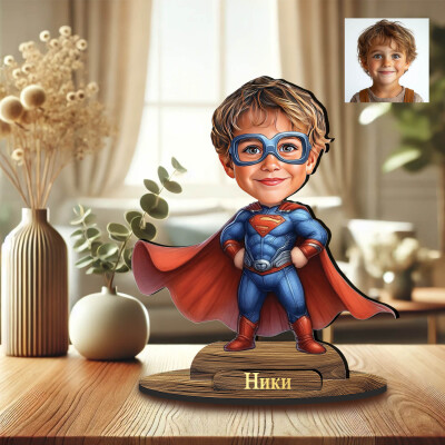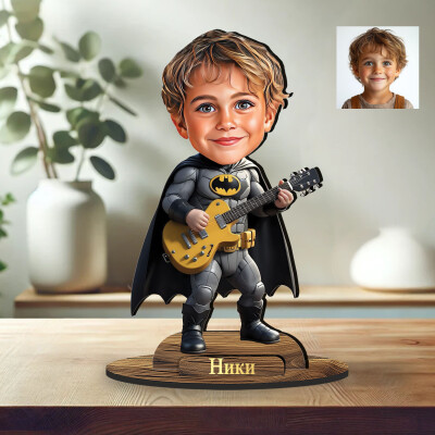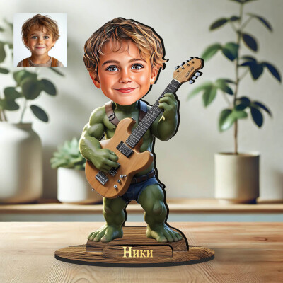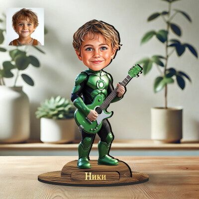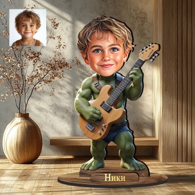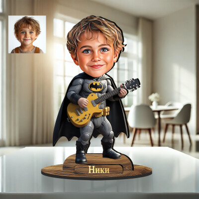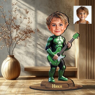 3Д дървен плакет - Карикатура на момче с китара- супергерой