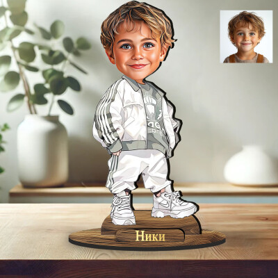 3Д дървен плакет - Карикатура на момче в бяло - Готов за игра