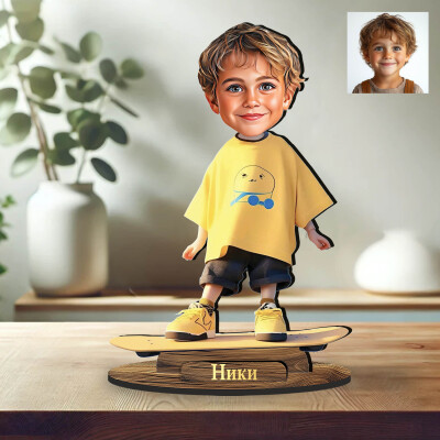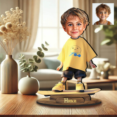 3Д дървен плакет - Карикатура на момче със скейтборд