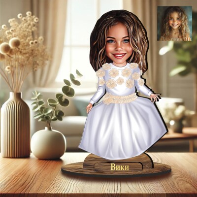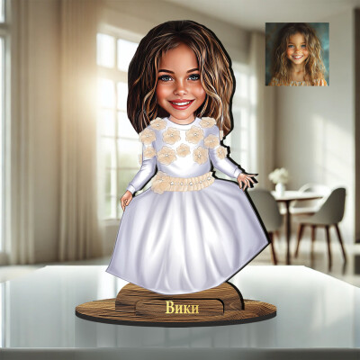 3Д дървен плакет - Карикатура на момиче в бяла рокля - принцеса