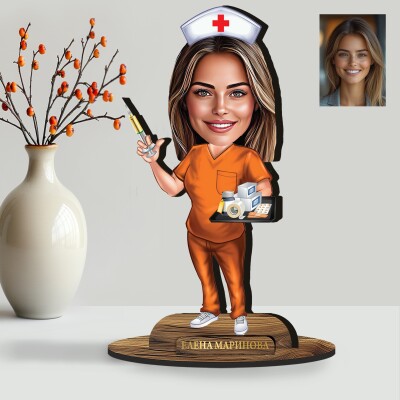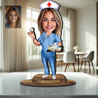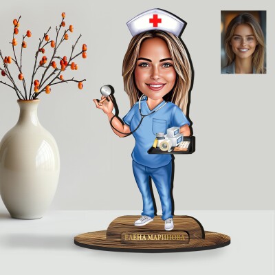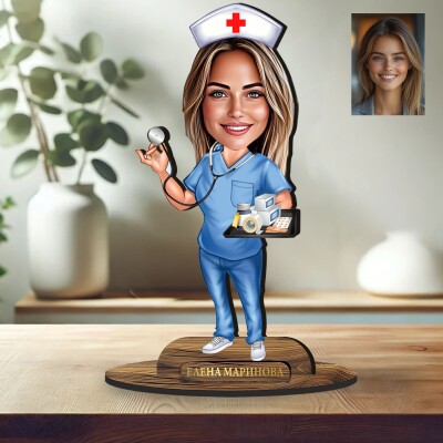 3Д дървен плакет - Карикатура Медицинска сестра