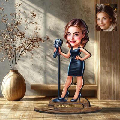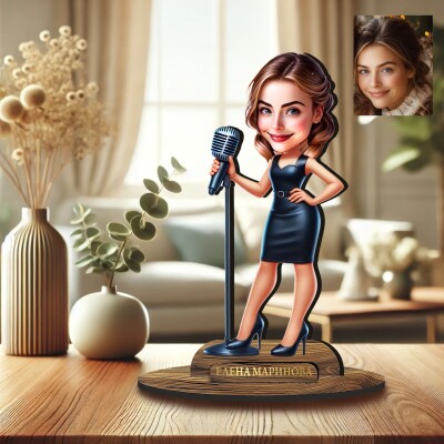 3Д дървен плакет - Карикатура Певица