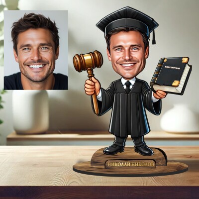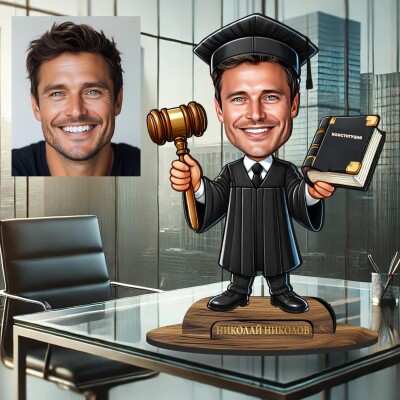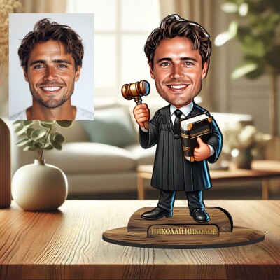 3Д дървен плакет - Карикатура Юрист - Адвокат
