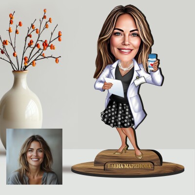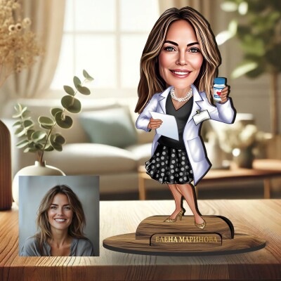 3Д дървен плакет - Карикатура Фармацевт