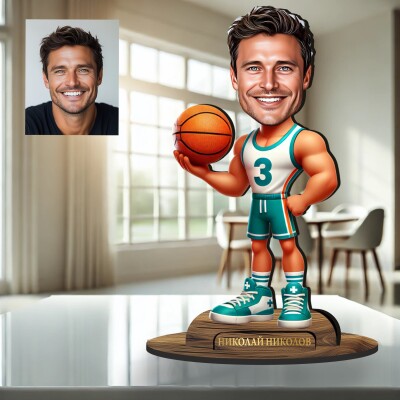 3Д дървен плакет - Карикатура Баскетболист