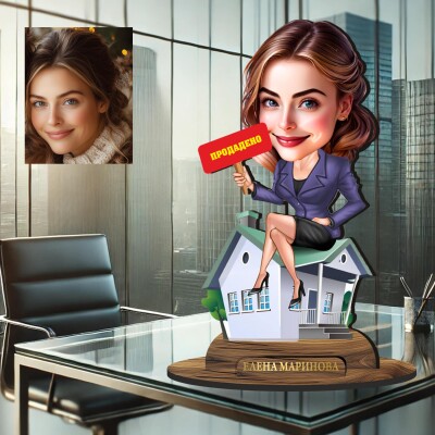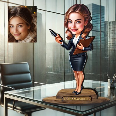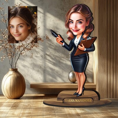 3Д дървен плакет - Карикатура Бизнес дама