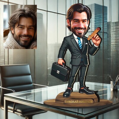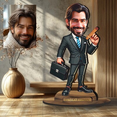 3Д дървен плакет - Карикатура Бизнесмен с пура и куфарче
