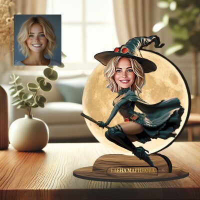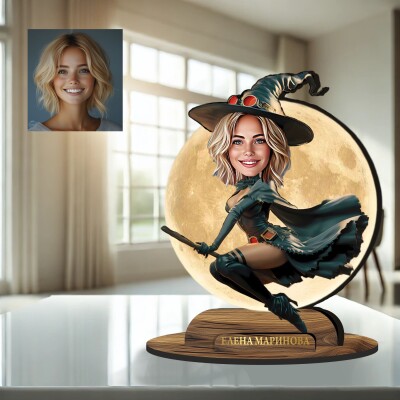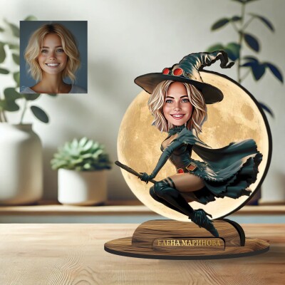 3Д дървен плакет - Карикатура Вещица