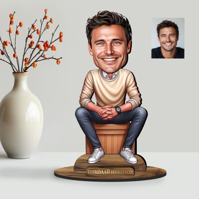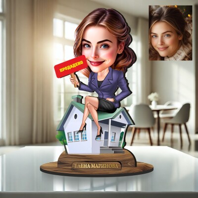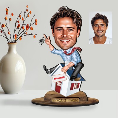 3Д дървен плакет - Карикатура Брокер
