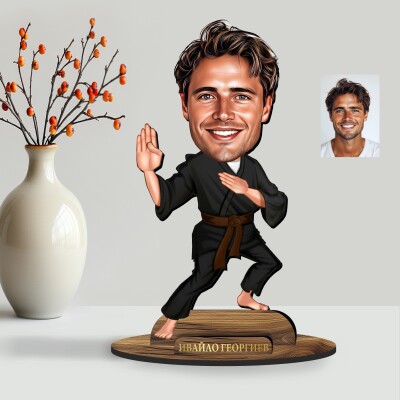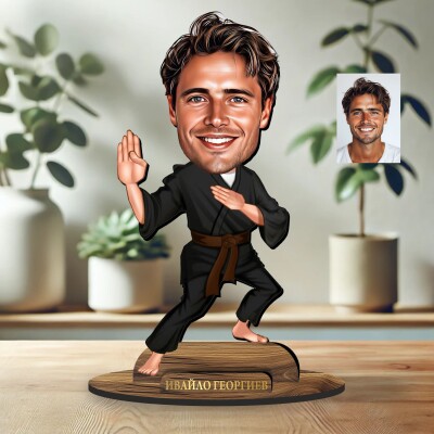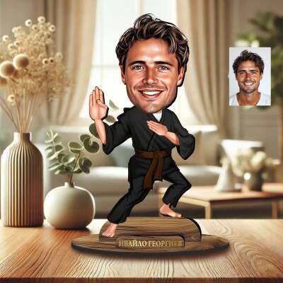 3Д дървен плакет - Карикатура Каратист