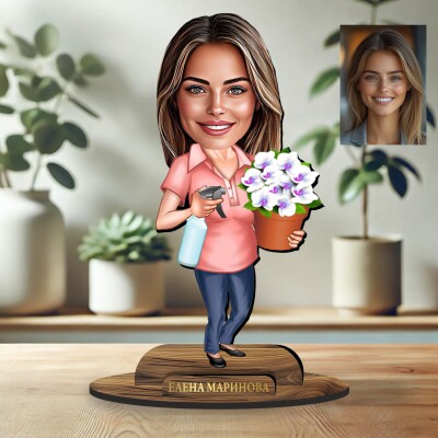 3Д дървен плакет - Карикатура Цветарка