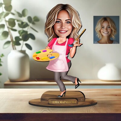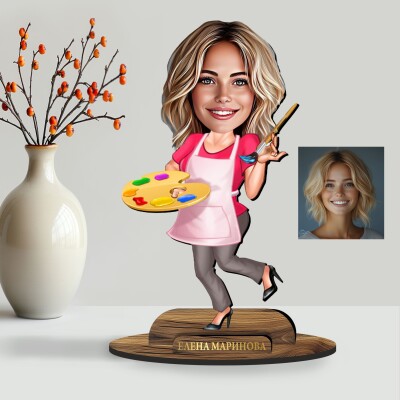 3Д дървен плакет - Карикатура Художничка