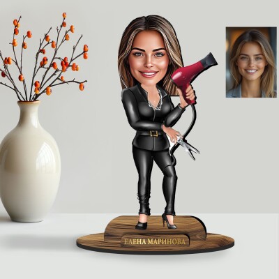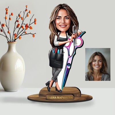3Д дървен плакет - Карикатура Фризьорка