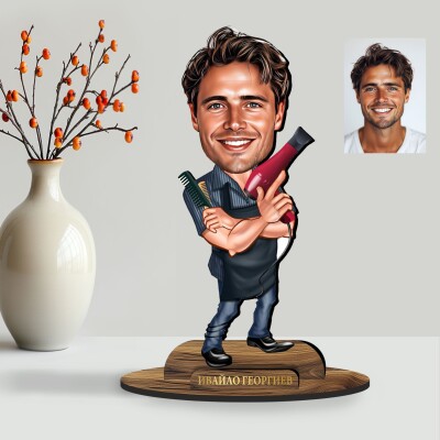 3Д дървен плакет - Карикатура Фризьор