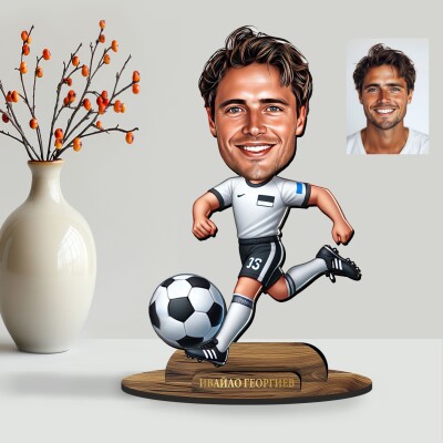 3Д дървен плакет - Карикатура Футболист