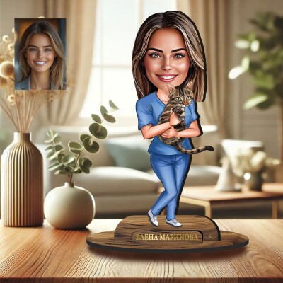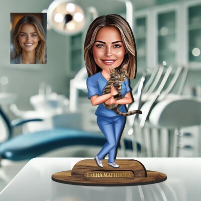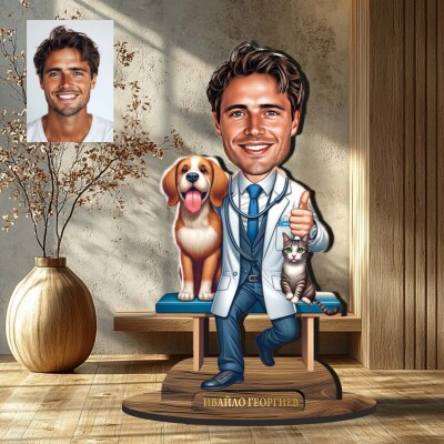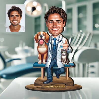 3Д дървен плакет - Карикатура Ветеринар