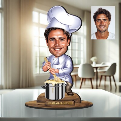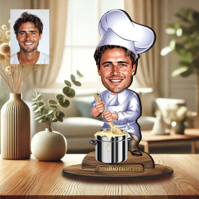 3Д дървен плакет - Карикатура Готвач