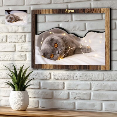 3D дървени картини със снимка на клиента - Домашен любимец котка